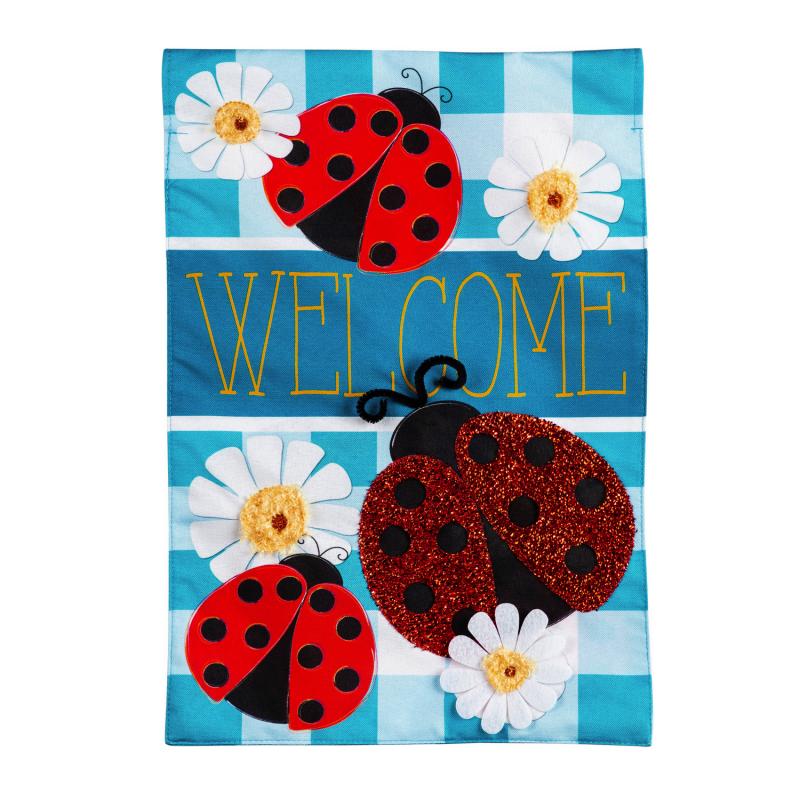 Ladybug Plaid Welcome House Flag