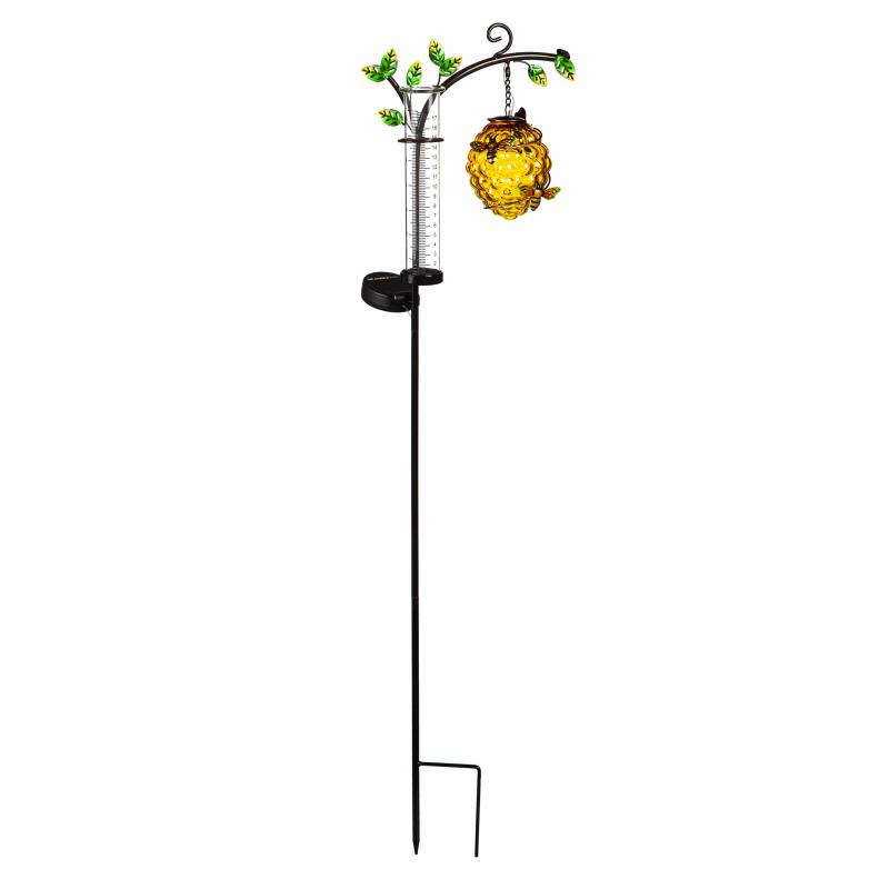 36" Beehive Solar Garden Stake With Rain Gauge Rain Gauge